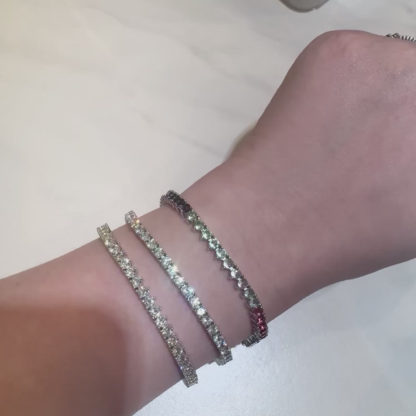 ✨ Pulseira Riviera 3 Garras – Verde Esmeralda – Banhada a Ródio